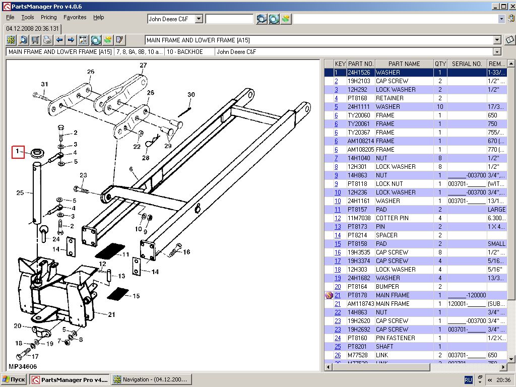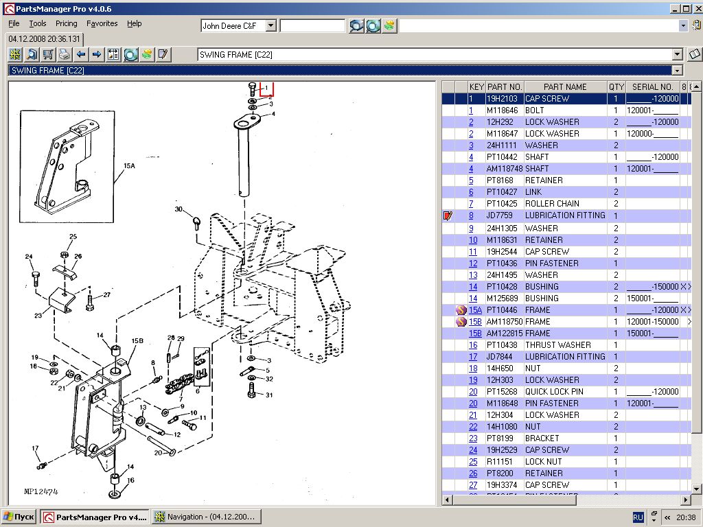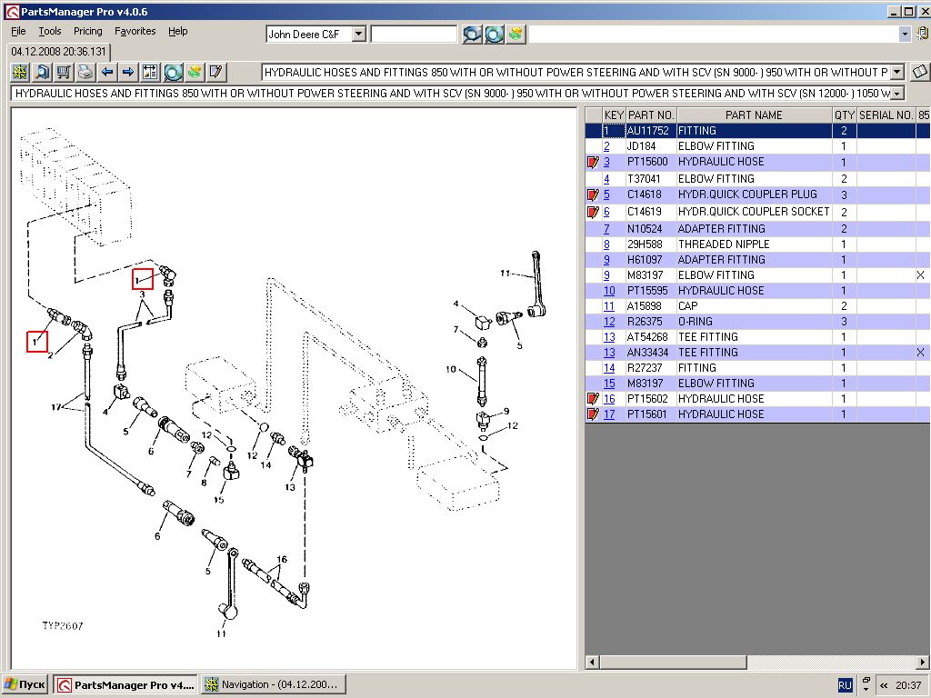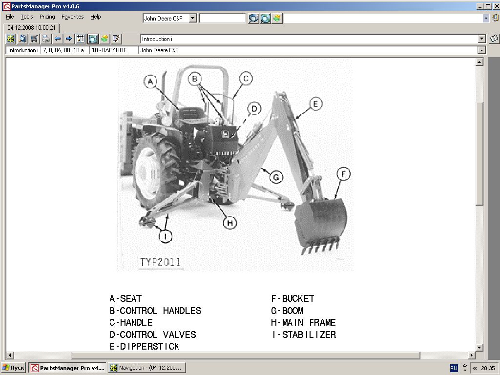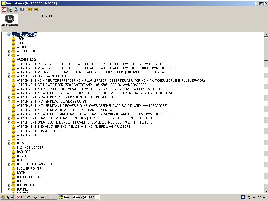 Каталоги запчастей для всей спецтехники компании John Deere, двигателей для данной техники, навесного оборудования и трансмиссии: Дорожностроительная техника - Бульдозеры, Грейдеры, Скреперы, Экскаваторы колесные, Экскаваторы гусеничные. Лесохозяйственная техника - Валочно-пакетирующие машины, Краны-манипуляторы колесные, Лесоперегрузчики штабелеры, Лесовозы с манипулятором, Лесопогрузчики. Погрузчики - Погрузчик вилочного типа колесный, Телескопические, Фронтальные, Погрузчики-экскаваторы, Погрузчики фронтальные колесные, Погрузчики фронтальные гусеничные, Мини-погрузчики. Самосвалы. Тракторы - Тракторы газонно парковые, Тракторы колесные. Мини-техника - Газонокосилки, Мини-погрузчики, Тракторы гусеничные. Сельскохозяйственная техника - Комбайны зерноуборочные, Комбайны фуражные, Хлопкоуборочные машины, Многоцелевые транспортные средства