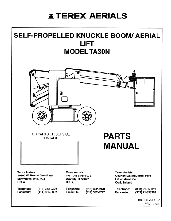 Каталог запчастей на подъемную платформу Terex Aerials TA30N