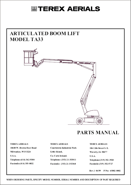 Каталог запчастей на подъемную платформу Terex Aerials TA33