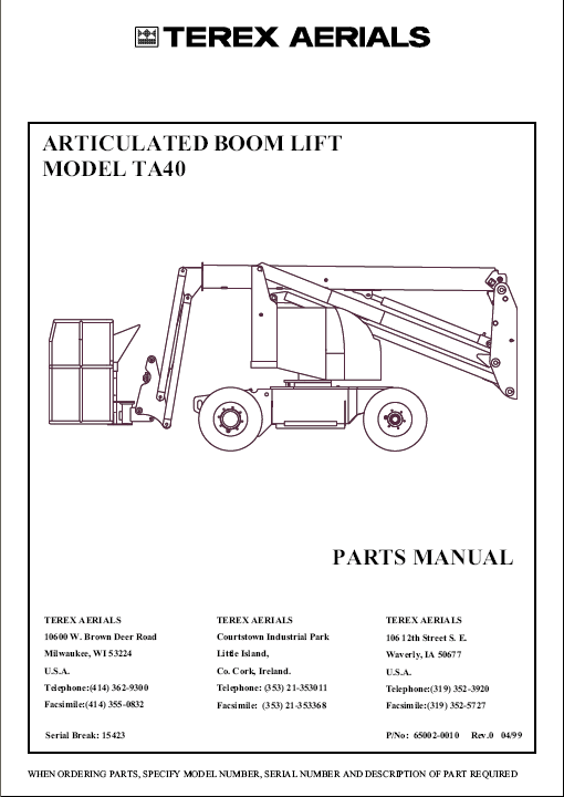 Каталог запчастей на подъемную платформу Terex Aerials TA40