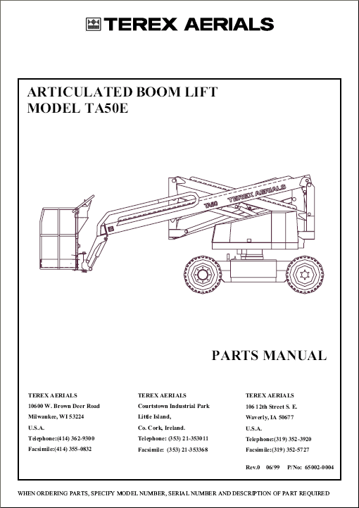 Каталог запчастей на подъемную платформу Terex Aerials TA50E