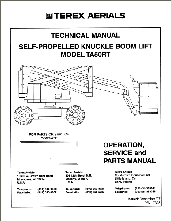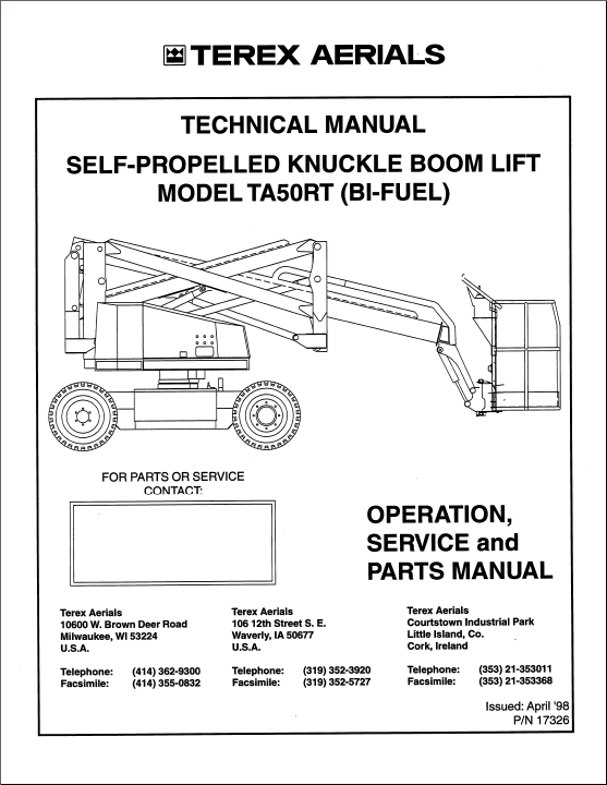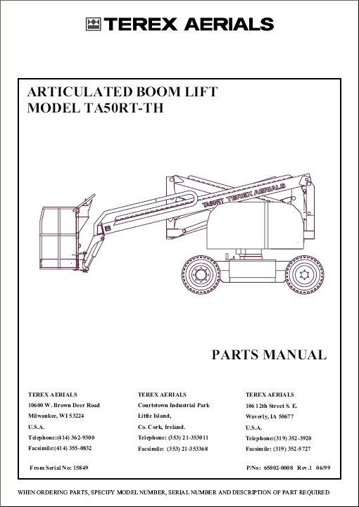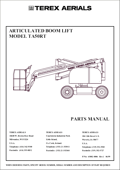 Каталог запчастей на подъемную платформу Terex Aerials TA50RT