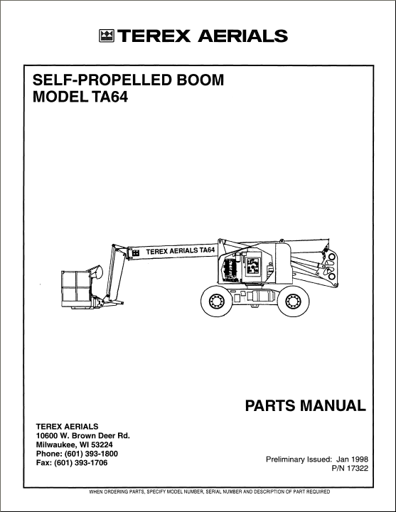 Каталог запчастей на подъемную платформу Terex Aerials TA64