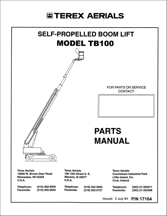 Каталог запчастей на подъемную платформу Terex Aerials TB100