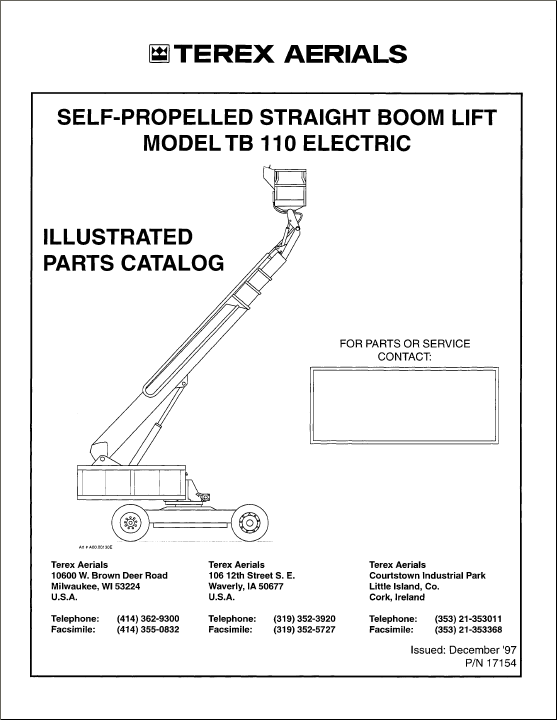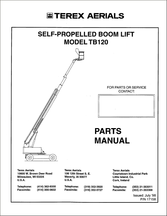 Каталог запчастей на подъемную платформу Terex Aerials TB120