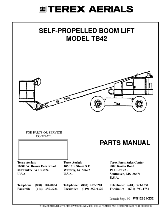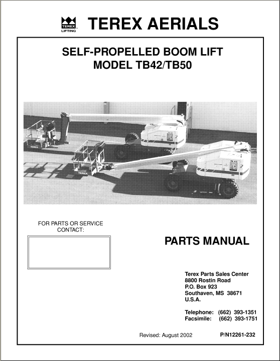 Каталог запчастей на подъемную платформу Terex Aerials TB42/TB50