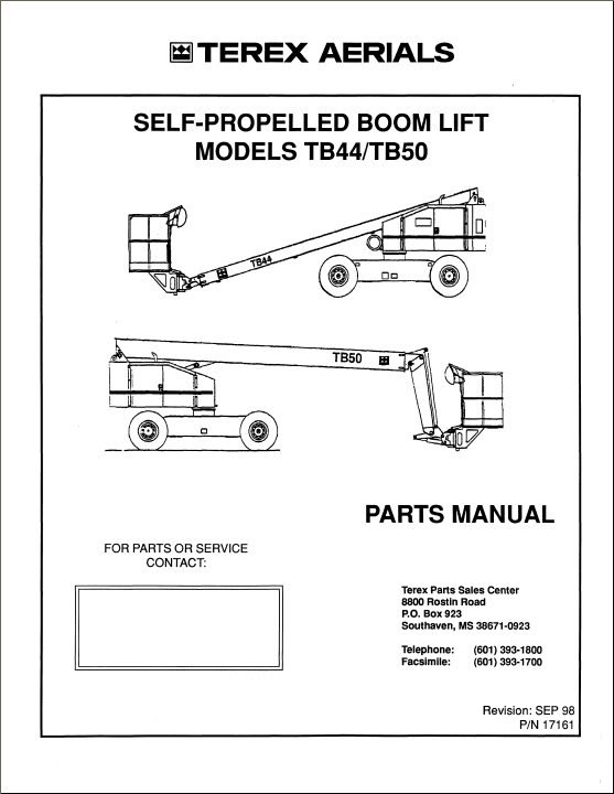 Каталог запчастей на подъемную платформу Terex Aerials TB44/TB50