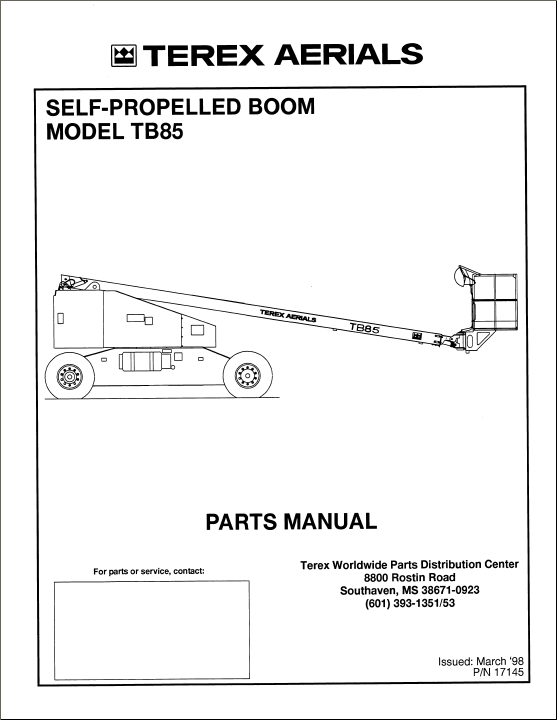 Каталог запчастей на подъемную платформу Terex Aerials TB85