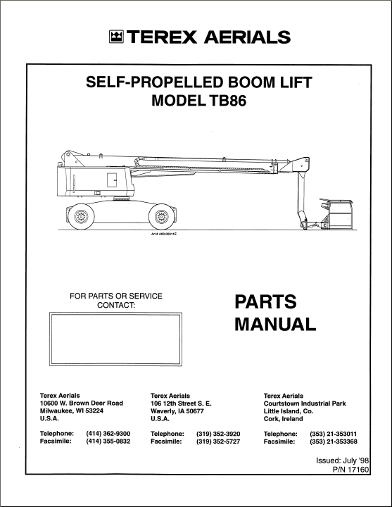 Каталог запчастей на подъемную платформу Terex Aerials TB86