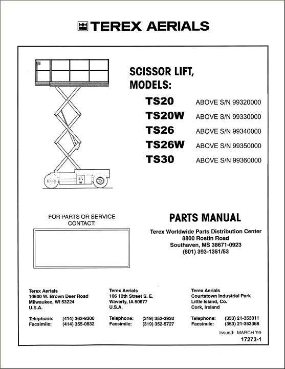 Каталог запчастей на подъемник ножничного типа Terex Aerials TS20/TS20W/TS26/TS26W/TS30