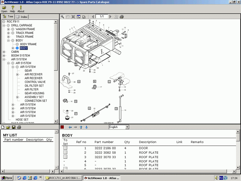 Каталог запчастей Atlas Copco ROC L7 Compressors XAS 1606