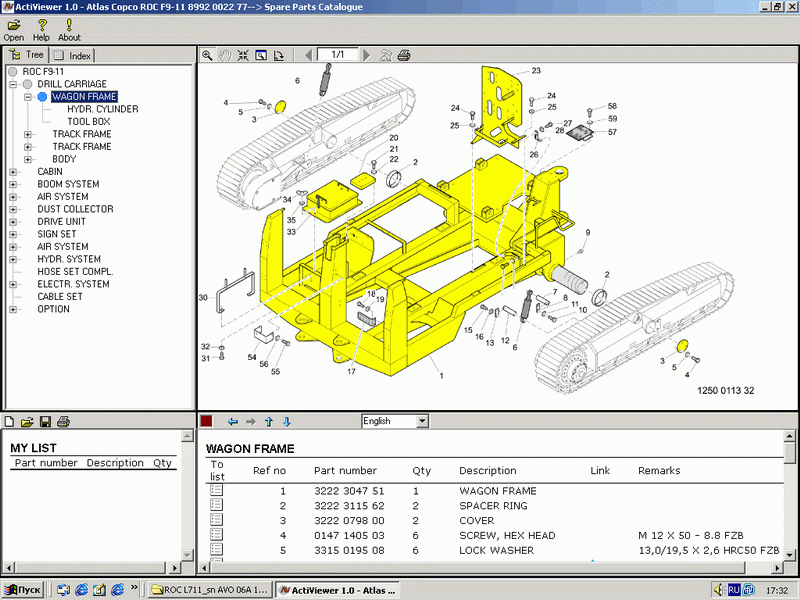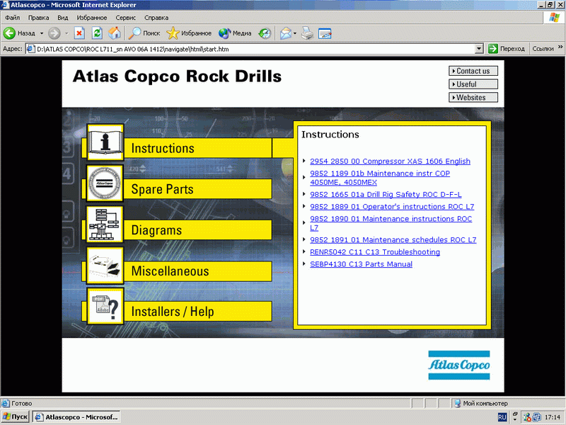 Каталоги запчастей, гидравлические и электрические схемы для бурильной и горно-проходческой техники Atlas Copco Rock Drills ROC L7