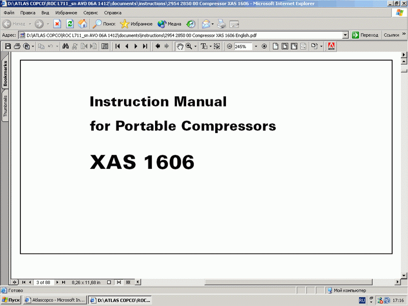 Инструкция по ремонту и обслуживанию Atlas Copco ROC L7 Compressors XAS 1606