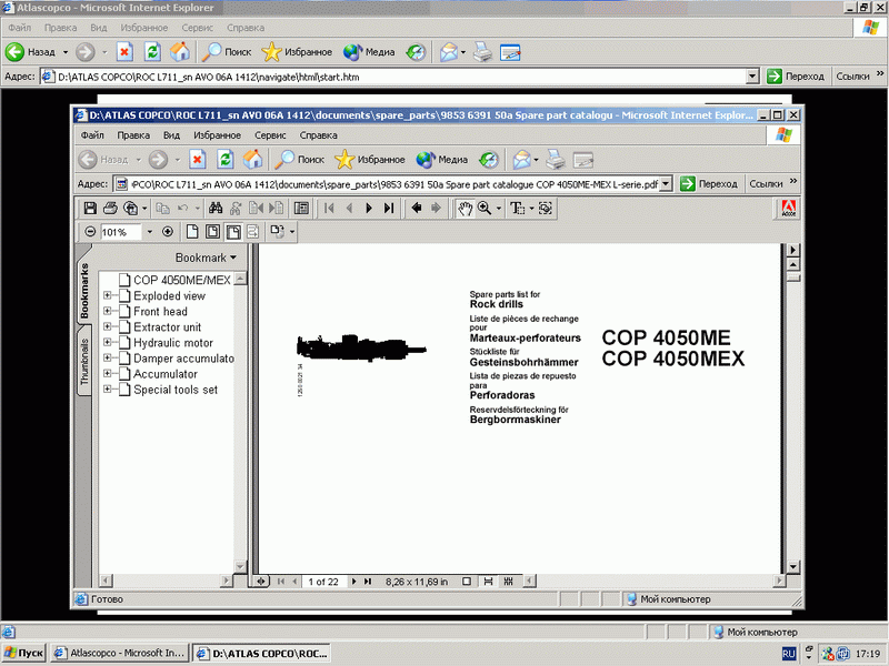 Каталог запчастей Atlas Copco Hydraulic Rock Drills COP 4050ME, COP 4050MEX