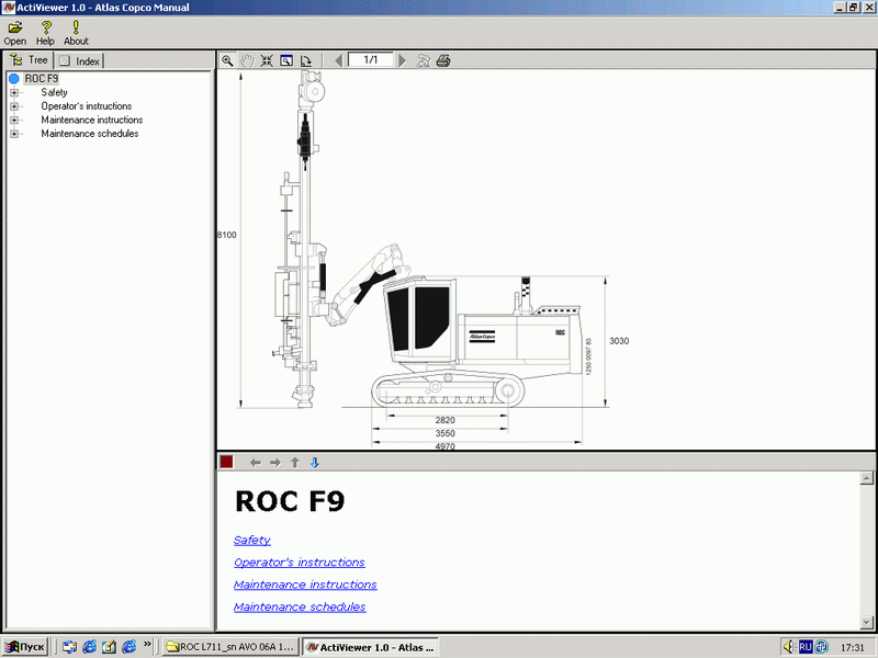 Каталог запчастей, инструкции оператора, электрические и гидравлические диаграммы для бурильной и горно-проходческой техники Atlas Copco Rock Drills F9/F9-11