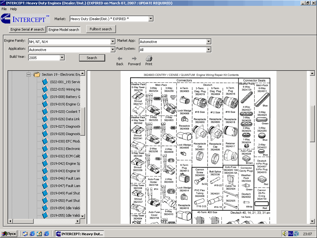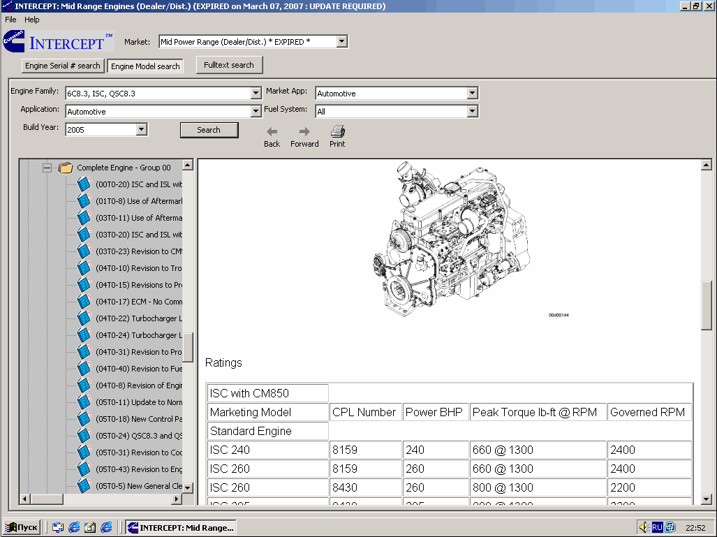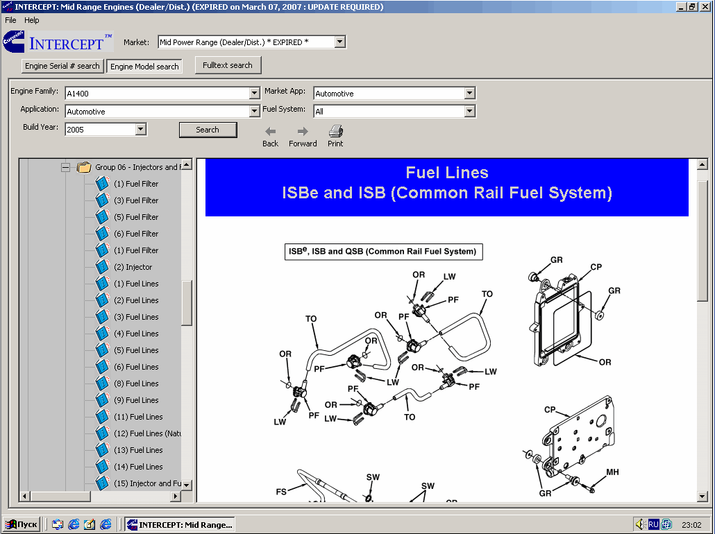 Заказать инструкцию, каталог, руководство При указании своего E-MAIL, обращайте внимание на точность его написания, т.к. если он будет указан не верно, мы не сможем с Вами связатьсяЭлектронные каталоги деталей и узлов, а так же ремонтно-сервисная информация на двигатели Cummins. Программное обеспечение Cummins InterCept позволяет значительно сократить время поиска информации о деталях, техобслуживании при ремонте двигателей Cummins. Cummins InterCept содержит оглавления со схемами, процедурами поиска неисправностей и ремонта, материалами о деталях и другую справочно-техническую информацию для ремонта двигателей Камминз. Электронные каталоги запчастей на двигатели Cummins.